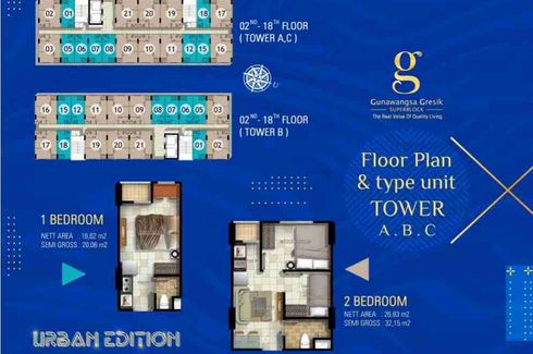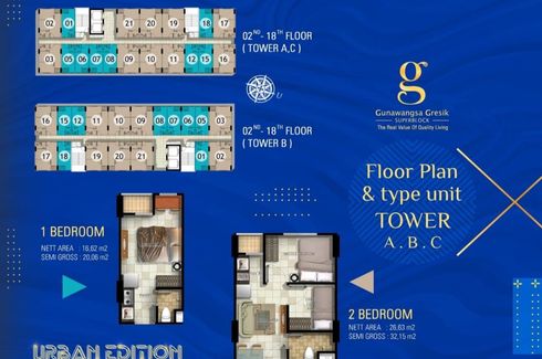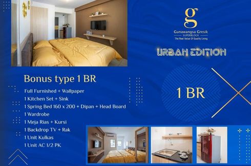 Apartemen Dijual dari 16.62sqm, yang terdiri dari 1 kamar tidur dan 1 kamar mandi berlokasi di Kota Kusuma, Gresik. Fasilitasi meliputi: Air conditioning, Car park, Garden, 24-hour security, Children's area, Equipped kitchen, TV, Panoramic view, Elevator, Water, Alarm, Built-in wardrobe, CCTV dan Guardhouse.