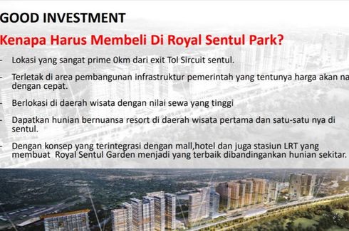 ‹ › 1/15 Apartemen dijual dengan 2 kamar tidur di Sentul, Jawa Barat Bogor, Jawa Barat RP 863,390,000 (RP 18,370,000 / m2) 2 2 47 m2 Apartemen Swimming pool Air conditioning Gym Internet Security Car park Garden Tennis court +5 Royal Sentul Park.Apartemen superblok di Sentul. Lokasinya strategis. Dekat dengan pintu tol. Dan selangkah dari stasiun LRT. Mudah menjangkau ke berbagai wilayah dengan beragam moda transportasi tersedia.Apartemen berkonsep Resort berkualitas hotel bintang 4. Nuansanya alam, back to Nature. Nyaman dan menyenangkan.DP hanya 8 jutaan.Cicilan sekitar 2 jutaan tahun pertama karena ada subsidi bunga.Terletak... richard - ID Call
