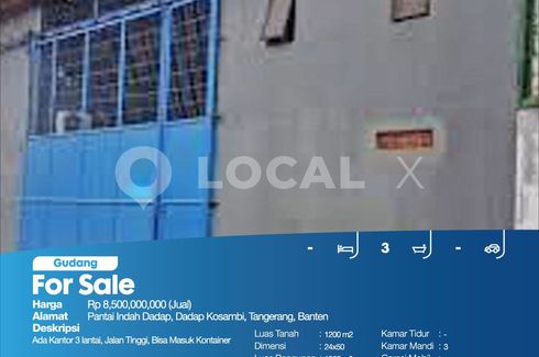 (Rp10jt/m2)Gudang Bekas Pabrik Ada Kantor Dan Mess Karyawan, Bisa Masuk Dan Manuver Kontener, 40 Dan 60 Feet, Muat 5 Kontener, Lokasi Dekat PIK 2 Strategis, Bebas BanjirFor Sale - JualGudang Jl. Raya Perancis Kali baru, Kosambi, Dadap, Tangerang, BantenHarga. Rp 59,250,000,000 (Jual)Deskripsi Properti. (Rp10jt/m2)Gudang Bekas Pabrik Ada Kantor Dan Mess Karyawan, Bisa Masuk Dan Manuver Kontener, 40...