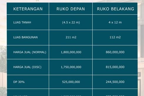 HOT PROJECT!TUASAN SOHOJalan Tuasan (Kawasan Bisnis), daerah KrakatauMEDANTotal 8 unit!Spesifikasi Ruko :- 3,5 tingkat- Luas Tanah 4x25 m- Luas Bangunan1 4x15 m- Luas Bangunan2&3 4x16,5 m- Kosong- SHM- Hadap UtaraHarga Perdana Rp 1.750.000.000,- (Normal Rp 1,795M)Spesifikasi Ruko (Dalam Komplek) :- 3 tingkat- Luas Tanah 4x14 m- Luas Bangunan1 4x12 m- Luas Bangunan2 4x13 m- Luas Bangunan3 4x9 m- Kosong-...