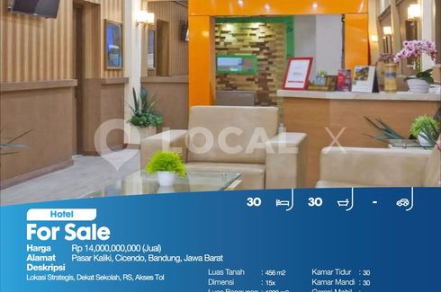 Lokasi Strategis, Dekat Sekolah, RS, Akses TolFor Sale - JualHotel Pasar Kaliki, Cicendo, Bandung, Jawa BaratHarga. Rp 14,000,000,000 (Jual)Deskripsi Properti. Lokasi Strategis, Dekat Sekolah, RS, Akses TolLuas Tanah. 456 m2Dimensi. 15xLuas Bangunan. 1200 m2Sertipikat. SHMKamar Tidur. 30Kamar Mandi. 30Garasi Mobil. -Hadap / View. UtaraLOCAL X Kelapa Gadinglocalx.id(021) 2906 ----P3KPG-00000427-ZZ-J