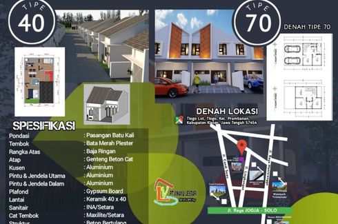 ‹ › 1/11 2 Bedroom House for sale in Tlogo, Central Java Klaten, Central Java RP 500,000,000 (RP 10,416,667 / m2) 2 1 48 m2 House Car park Garden Children's area Grill House for sale of 48sqm, consisting of 2 bedrooms and 1 bathroom located at Tlogo, Klaten. Facilities include: Car park, Garden, Children's area and Grill. Andre Wastu Call