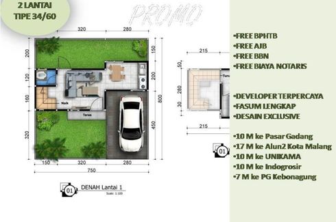 House for sale of 25sqm, consisting of 2 bedrooms and 1 bathroom located at Pakisaji, Malang. Facilities include: Swimming pool, Air conditioning, Gym, Security, Car park, Garden, Children's area, Panoramic view, Concierge, Grill and Video cable.