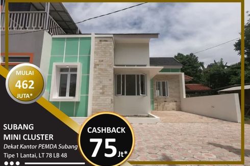 House for sale of 50sqm, consisting of 2 bedrooms and 1 bathroom located at Anggasari, Subang. Facilities include: Air conditioning, Gym, Internet, Security, Car park, Garden, Children's area, Panoramic view, Grill and Video cable.