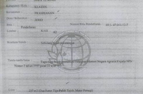 ‹ › 1/5 Land for sale in Joho, Central Java Klaten, Central Java RP 237,000,000 Land for sale located at Joho, Klaten. Hanan Call