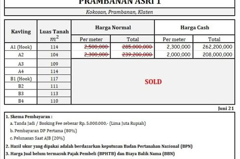 ‹ › 1/6 Land for sale in Kokosan, Central Java Klaten, Central Java RP 126,000,000 70 m2 Jika rumah tak terbeli lantaran harganya terlalu tinggi, belilah tanah dulu dan bangun sendiri. Developer biasanya mengambil untung setara 40 persen dari nilai tanah dan bangunan.Ketimbang 40% atau sekira 150 juta kamu berikan developer, lebih untung bangun rumah sendiri kan? Harga tanah di PRAMBANAN saat ini sedang amat murah lantaran masih pandemi. Belilah sekarang agar tak menyesal harga tinggi... Bennedicta Jogja Call