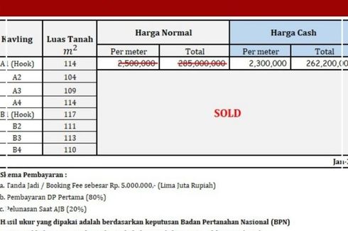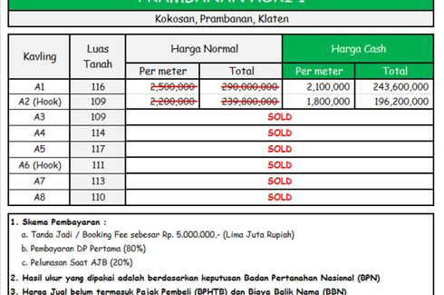 ‹ › 1/4 Land for sale in Kokosan, Central Java Klaten, Central Java RP 194,400,000 108 m2 Ada yang bangun rumah beli batu bata dulu, nabung. Kadang nyicil beli genteng, atau nyicil mengumpulkan pasir. Pula halnya tanah. Bisa nabung, bayar DP dulu. Lantas dibayar nyicil selama 12X.Semua bisa diatur sesuai keleluasaan finansial. Yang pasti punya tanah itu berarti separo mimpi memiliki rumah telah terwujud. Terpenting punya tanah dulu. Kabar baiknya, tanah luasan minimal 120-an m2 sertipikatnya... Bennedicta Jogja Call