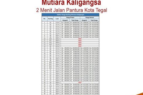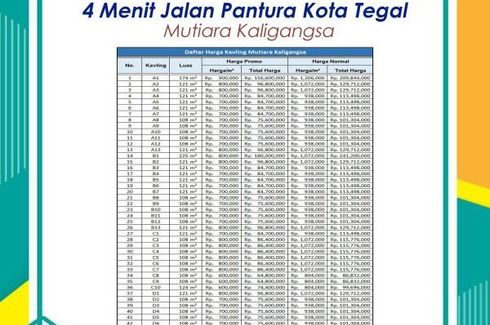 ‹ › 1/5 Tanah dijual dengan di Kaligangsa, Jawa Tengah Tegal, Jawa Tengah RP 86,000,000 121 m2 Beli property terutama Tanah kapling merupakan pilihan paling tepat sebagai pelampung kekayaan. Terjamin aman dengan sertifikat pecah per unit. Pun jauh lebih aman dari mangkrak ketimbang beli apartemen atau property komersial lainnya.Kini momentum emas beli kavling Dukuhwringin Residence. Dapatkan harga terbaik Tanah kapling berkualitas premium. Lahan datar, bentuk bidang ideal jalan kapling ROW 5... AnamProperty Call