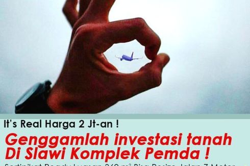 Inilah yang sering terjadi, cicilan sudah cukup untuk mengangsur Tanah, tapi uang muka seperti Kimberly Rider: tinggi, tak teraih. Maka, ketika ada promo ini, ya mungkin Kimberly Rider takkan datang dua kali, eh, maksudnya kesempatan tak datang dua kali. Beli Tanah di tempat kami bayarnya bisa 12 X.Maka, datangi dulu kantor pengembang, baru dealer mobil, jangan kebalik ya. Hahaha.Info Sekitar Lokasi...