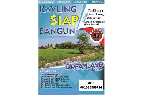 ‹ › 1/1 Land for sale in Sumbersari, East Java Jember, East Java RP 100,613,000 84 m2 Land for sale located at Sumbersari, Jember. Selvi - vaniproperti3 Call