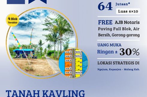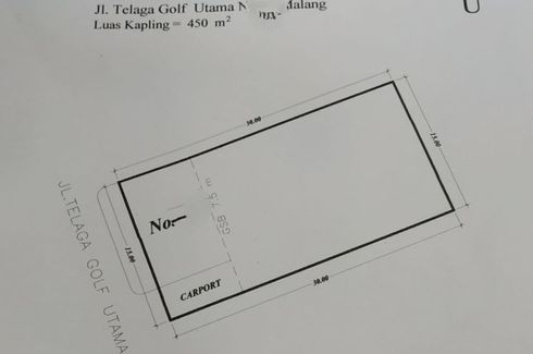 Land for sale located at Pakisaji, Malang. Facilities include: Swimming pool, Air conditioning, Gym, Internet, Security, Car park, Garden, Tennis court, Children's area, Panoramic view, Concierge, Library, Grill and Video cable.