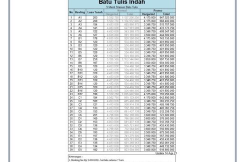 Save this search to receive emails when new land for sale are listed in Batutulis. The average listing price in Batutulis was RP 485,361,714 on 1 Jan 2023 and the average size was 114.9 square meters with 0.0 bedrooms. The average price per square meter for land in Batutulis was RP 4,224,210.