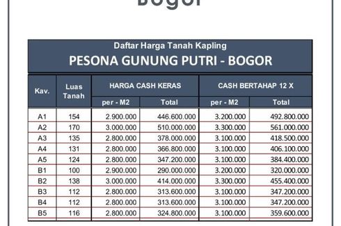 ‹ › 1/2 Land for sale in Ciangsana, West Java Bogor, West Java RP 365,883,000 131 m2 Land for sale located at Ciangsana, Bogor. Bagas Arraafi Call