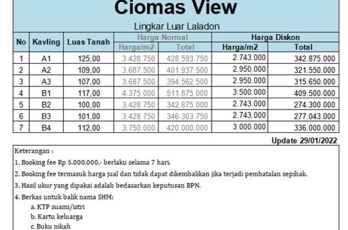 Tanah Dijual di Ciomas, Bogor