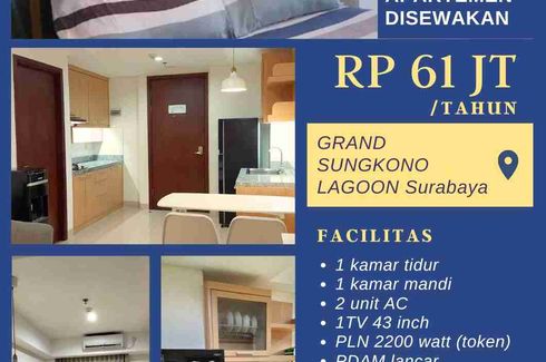 Apartment for rent of 60sqm, consisting of 1 bedroom and 1 bathroom located at Dukuh Pakis, Surabaya. Facilities include: Swimming pool, Air conditioning, Security, Car park, Balcony, 24-hour security, Children's area, Electricity, Elevator, Terrace, Water, Patio and Grill.