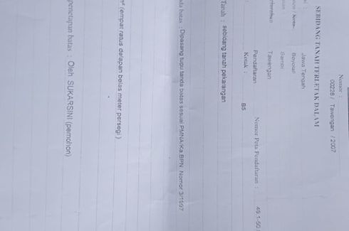 ‹ › 1/2 Land for sale in Sambi, Central Java Boyolali, Central Java RP 100,000,000 585 m2 Land for sale located at Sambi, Boyolali. Dimas_PRO Call