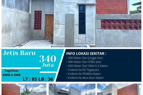 ‹ › 1/5 2 Bedroom House for sale in Jetis, Central Java Klaten, Central Java RP 340,000,000 (RP 9,444,444 / m2) 2 1 36 m2 House Car park Garden House for sale of 36sqm, consisting of 2 bedrooms and 1 bathroom located at Jetis, Klaten. Facilities include: Car park and Garden. Shindid Heiwa Property Call