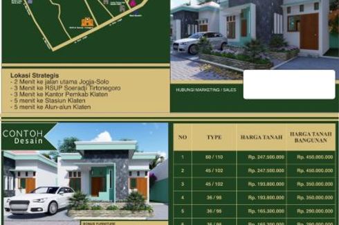 ‹ › 1/5 2 Bedroom House for sale in Kunden, Central Java Klaten, Central Java RP 290,000,000 (RP 8,055,556 / m2) 2 1 36 m2 House Car park Garden Children's area House for sale of 36sqm, consisting of 2 bedrooms and 1 bathroom located at Kunden, Klaten. Facilities include: Car park, Garden and Children's area. Sandib Heiwa Property Call
