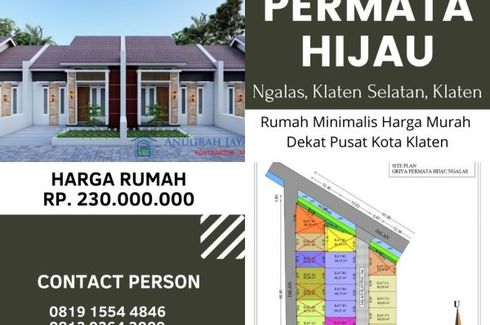 House for sale of 36sqm, consisting of 2 bedrooms and 1 bathroom located at Ngalas, Klaten. Facilities include: Security, Car park, Garden, Children's area, Panoramic view and Library.