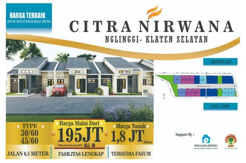 ‹ › 1/3 2 Bedroom House for sale in Nglinggi, Central Java Klaten, Central Java RP 180,000,000 (RP 6,000,000 / m2) 2 1 30 m2 House Car park Garden House for sale of 30sqm, consisting of 2 bedrooms and 1 bathroom located at Nglinggi, Klaten. Facilities include: Car park and Garden. Sandib Heiwa Property Call