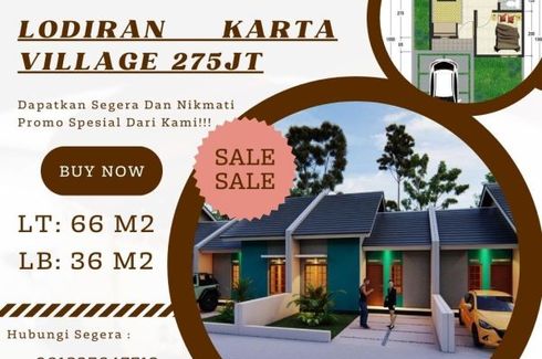 ‹ › 1/5 2 Bedroom House for sale in Solodiran, Central Java Klaten, Central Java RP 275,000,058 (RP 7,638,891 / m2) 2 1 36 m2 House Car park Garden House for sale of 36sqm, consisting of 2 bedrooms and 1 bathroom located at Solodiran, Klaten. Facilities include: Car park and Garden. Shindid Heiwa Property Call