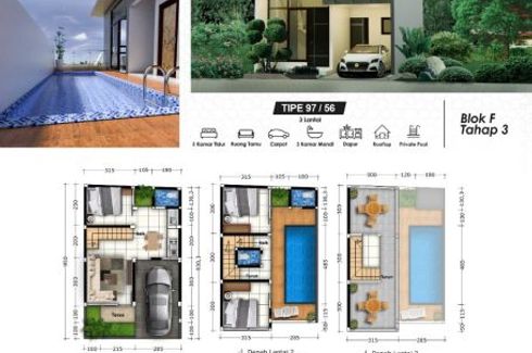 House for sale of 65sqm, consisting of 3 bedrooms and 2 bathrooms located at Beji, Batu. Facilities include: Swimming pool, Air conditioning, Gym, Internet, Security, Car park, Garden, Tennis court, Children's area, Panoramic view, Concierge, Library, Grill and Video cable.