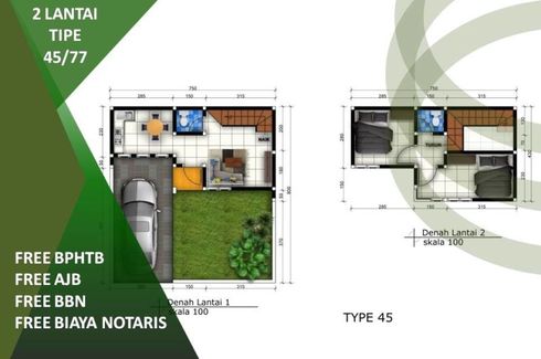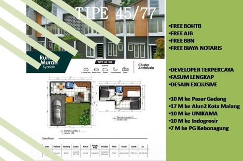House for sale of 45sqm, consisting of 2 bedrooms and 2 bathrooms located at Babat, Lamongan. Facilities include: Swimming pool, Air conditioning, Gym, Security, Car park, Garden, Children's area, Panoramic view, Concierge, Grill and Video cable.