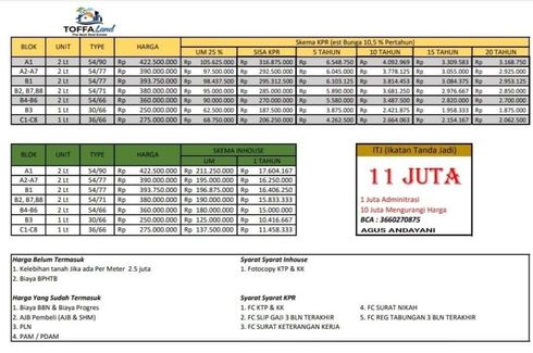 Land for sale located at Arjowinangun, Malang. Facilities include: Swimming pool, Air conditioning, Gym, Internet, Security, Car park, Garden, Tennis court, Children's area, Panoramic view, Concierge, Library, Grill and Video cable.