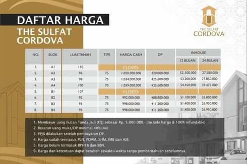 House for sale of 30sqm, consisting of 2 bedrooms and 1 bathroom located at Bunulrejo, Malang. Facilities include: Swimming pool, Air conditioning, Gym, Internet, Security, Car park, Garden, Tennis court, Children's area, Panoramic view, Concierge, Library, Grill and Video cable.