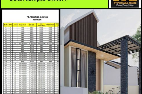 House for sale, consisting of 2 bedrooms and 2 bathrooms located at Kepanjen, Malang. Facilities include: Swimming pool, Gym, Internet, Security, Garden, Children's area and Panoramic view.