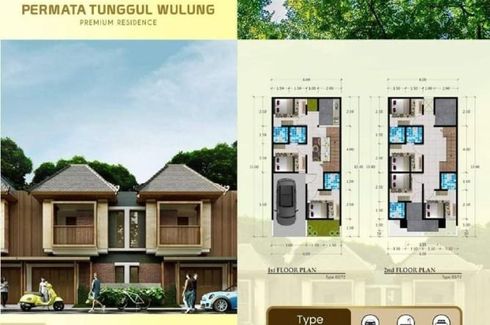 House for sale of 65sqm, consisting of 3 bedrooms and 2 bathrooms located at Tunggulwulung, Malang. Facilities include: Gym, Internet, Security, Car park, Garden, Children's area, Panoramic view and Video cable.
