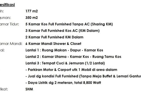 0823,8845,2223 Michelle Mansion Jual Rumah Kost Aktif Kendangsari Wonocolo Surabaya Full Furnish dekat Rungkut IndustriKOST Kendangsari - 4.8MLT 177/LB 350 KT 10 KM 6 2.5 LantaiSurat SHMRumah Kost AKTIF, Full Furnish, Strategis, Baru Renov 2019