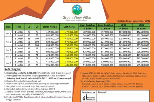 House for sale of 70sqm, consisting of 2 bedrooms and 1 bathroom located at Cilame, Bandung Barat. Facilities include: Security, Car park, Garden, Children's area, Panoramic view and Video cable.