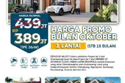 ‹ › 1/4 Rumah dijual dengan 2 kamar tidur di Cipangeran, Jawa Barat Bandung Barat, Jawa Barat RP 389,000,000 (RP 10,805,556 / m2) 2 1 36 m2 Rumah *DE'HOUSE VALLEY Cidahu*Hunian dengan Konsep Rumah yang Tropical Modern dan berada di lembah Cidahu Kel Cipageran perbatasan kota Cimahi Konsep Kawasan dengan penyediaan FasUm dan FaSos seperti:? Arena Bermain? Taman? MasjidFasilitas lain:? 1 Gate System? Security 24 hours CCTV? Jalan paving block? Implementasi BIOPORI dan Sumur Resapan.KeUnggulan:+ Lokasi Strategis+ Design minimalis+ Bebas banjir+... Central Property Indonesia Call