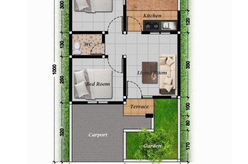 House for sale of 36sqm, consisting of 2 bedrooms and 1 bathroom located at Cangkuang, Bandung. Facilities include: Gym, Internet, Security, Car park, Garden, Children's area, Panoramic view and Video cable.