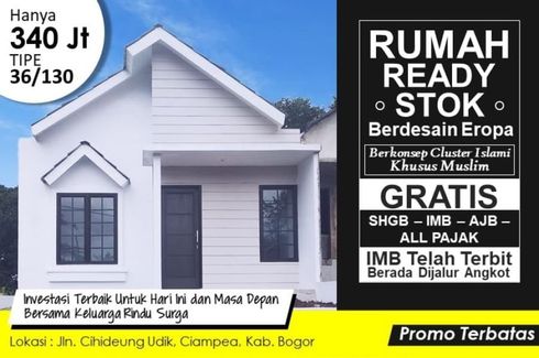 House for sale of 45sqm, consisting of 2 bedrooms and 1 bathroom located at Ciampea, Bogor. Facilities include: Air conditioning, Gym, Internet, Security, Car park, Garden, Children's area, Library and Video cable.