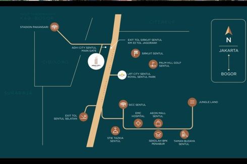 Apartemen Dijual, yang terdiri dari 2 kamar tidur dan 2 kamar mandi berlokasi di Sentul, Bogor. Fasilitasi meliputi: Car park, Balcony, 24-hour security, Electricity, Panoramic view, Concierge, Elevator, Water, Guardhouse dan Utility room.