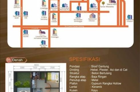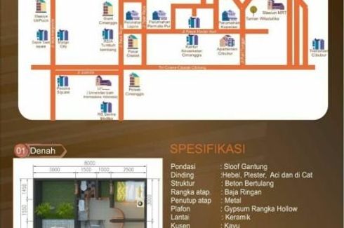 Townhouse for sale of 45sqm, consisting of 2 bedrooms and 1 bathroom located at Mekarsari, Depok. Facilities include: Swimming pool, Air conditioning, Gym, Internet, Security, Car park, Garden, Balcony, Tennis court, Wi-Fi, Children's area, Equipped kitchen, Electricity, Panoramic view, Library, Roof garden, Terrace, Water, Patio, Alarm, Built-in wardrobe, CCTV, Built-in kitchen, Natural gas, Office...