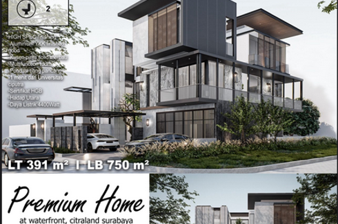 Rumah Citraland Watefront Spesifikasi :* LT / LB : 240m2 (12x20) / 567m2* KT / KM : 5+2 / 6+1* Hadap : Selatan* Sertifikat : HGB* Keterangan : Listrik 5500 Watt, High Spec, Rumah Baru Gress, Super Lux, Bangunan 3 Lantai Modern Tropical, Garasi 4 Mobil, Carport 2 Mobil, 2 Dapur, 2 Gudang , Aluminium YKK Finished Good, Pintu Kayu Merbau dan Architrave, 8 AC (2 Cassette), 8 CCTV IP Camera, Sanitary Kohler,...