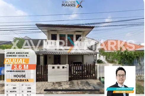 Rumah Dijual dari 500sqm, yang terdiri dari 6 kamar tidur dan 2 kamar mandi berlokasi di Jemur Wonosari, Surabaya. Fasilitasi meliputi: Air conditioning, Internet, Car park, Garden, Balcony, Wi-Fi, 24-hour security, Children's area, Equipped kitchen, Electricity, Panoramic view, Concierge, Roof garden, Terrace, Water, Patio, CCTV, Office, Cistern, Fully fenced dan Deck.