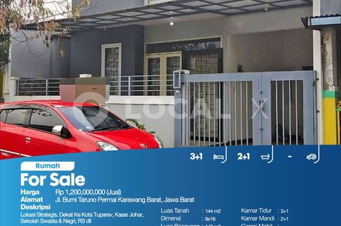 Lokasi Strategis, Dekat Ke Kota Tuparev, Kasar Johar, Sekolah Swasta & Negri, RS dllFor Sale - JualRumah Jl. Bumi Taruno Permai Karawang Barat, Jawa BaratHarga. Rp 1,200,000,000 (Jual)Deskripsi Properti. Lokasi Strategis, Dekat Ke Kota Tuparev, Kasar Johar, Sekolah Swasta & Negri, RS dllLuas Tanah. 144 m2Dimensi. 9x16Luas Bangunan. 140 m2Sertipikat. SHMKamar Tidur. 3+1Kamar Mandi. 2+1Garasi Mobil....