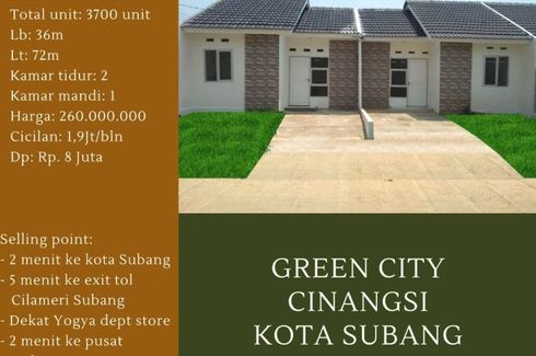‹ › 1/8 Rumah dijual dengan 2 kamar tidur di Cinangsi, Jawa Barat Subang, Jawa Barat RP 260,000,000 (RP 7,222,222 / m2) 2 1 36 m2 Rumah Security Car park Garden Children's area Sekaranglah waktunya anda punya Rumah sendiri.Lokasinya pinggir jalan raya dan strategis. di mainroad jalan Raya Cinangsi Subang Kota. Rumahnya istimewa dengan speck bangunan yang berkualitas dikelasnya dengan harga yang menawan. Bila ingin kredit, Dp dan cicilannya pun ringan.PeRumahan Subang Green City berada di Kawasan yang sedang berkembang pesat karena berada di Kawasan Industri. Memiliki Rumah... Wido Call