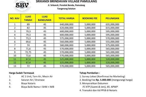 ‹ › 1/14 Tanah dijual dengan di Bambu Apus, Banten Tangerang Selatan, Banten RP 236,000,200 62 m2 Cluster Bebas Banjir Di Pamulang Tangerang SelatanTersedia Rumah dan Tanah Kavling Hanya 3.8 Juta Permeter sudah ber- SHM.Setelah sukses dengan perumahan Bukit Cilalung Indah TangselKembali kami pasarkan Tanah kavling dan unit rumah di Benda, Pamulang Tangerang Selatan .Alamat :Jl. Srikandi, Pondok Benda, Kec. Pamulang, Kota Tangerang Selatan.Selling Point : • Tanah darat / Tanah merah • Row 6... Agung Wibowo Call