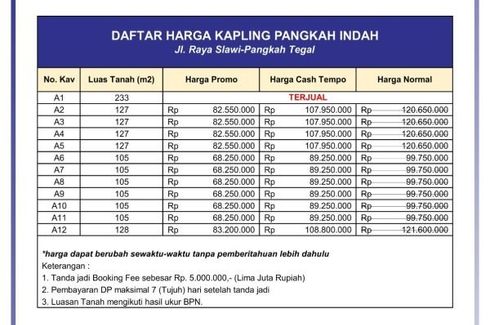 Save this search to receive emails when new land for sale are listed in Pangkah. The average listing price in Pangkah was RP 78,257,692 on 1 Feb 2023 and the average size was 128.1 square meters with 0.0 bedrooms. The average price per square meter for land in Pangkah was RP 610,911.