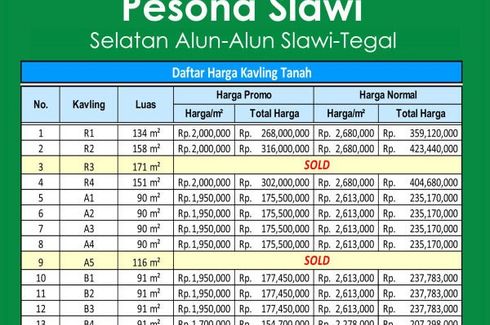 Tanah dijual dengan di Slawi Kulon, Jawa Tengah