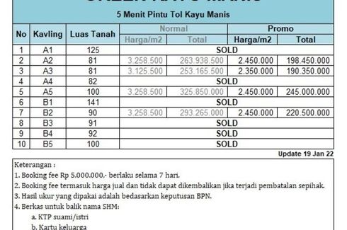 ‹ › 1/5 Tanah dijual dengan di Cilebut Barat, Jawa Barat Bogor, Jawa Barat RP 166,050,000 81 m2 Konsumen pintar jelas memastikan lokasi Tanah kavling berikut legalitasnya. Produk kami selalu memiliki keunggulan lokasi bagus dan strategis. Berikutnya adalah harga. Nah, ini pun bisa dikomunikasikan cara bayarnya.Info Sekitar :- DC Yogya Kayumanis- SMP Kreativa Bogor- Dekat Pintu Tol Kayu Manis 2 Rosa Call