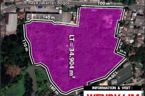 * * * * LAND TO SALE! * * * *Jl.RAYA PARUNG/BOGOR,JABARLT. 34.904 M² || SHM || BARAT" lebar muka (+/-) 100 meter "* * * * PARUNG FARM !! * * * *#IDR. 1,7 JT/M² (( MASINEGO ))Dekat: Parung, Bogor, Bojongsari, Depok,Citayem, Citayam, Tajur Halang, Duren Mekar, Jabon MekarUntuk Informasi - Transaksi - Survey hub : WENDY LIM - 0856728----Apabila bpk/ibu sedang mencari Property Butuh bantuan untuk Memasarkan...