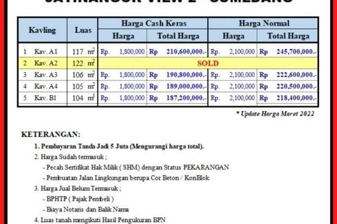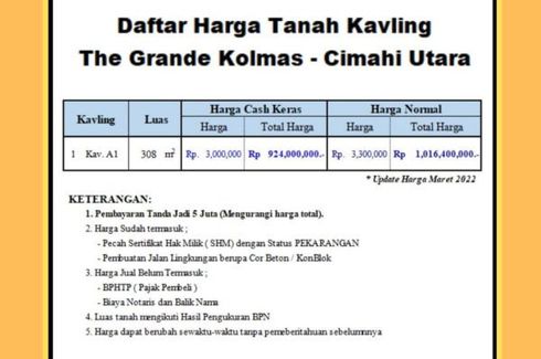 Harga rata-rata untuk tanah di Cimahi adalah RP 349,523,095. The median list price has gone diatas by 0.0% dibandingkan dengan tahun lalu. Harga rata-rata per m2 untuk tanah di Cimahi adalah RP 2,978,785 per meter persegi
