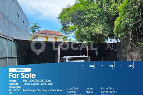 (Rp5.1jt/m2) Lokasi Strategis, Siap Bangun, Dekat Akses TolFor Sale - JualTanah Tapos, Depok, Jawa BaratHarga. Rp 1,100,000,000 (Jual)Deskripsi Properti. (Rp5.1jt/m2) Lokasi Strategis, Siap Bangun, Dekat Akses TolLuas Tanah. 216 m2Dimensi. 10x21.6Luas Bangunan. m2Sertipikat. SHMKamar Tidur. -Kamar Mandi. -Garasi Mobil. -Hadap / View. Timur LautLOCAL X Kelapa Gadinglocalx.id(021) 2906 ----P3KPG-00001936-WT-J