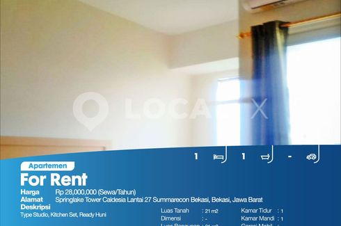 ‹ › 1/2 Virtual tour Apartemen disewa dengan 1 kamar tidur di Perwira, Jawa Barat Bekasi, Jawa Barat RP 28,000,000 / bulan 1 1 21 m2 Apartemen Type Studio, Kitchen Set, Ready HuniFor Rent - SewaApartemen Springlake Tower Caldesia Lantai 27 Summarecon Bekasi, Bekasi, Jawa BaratHarga. Rp 28,000,000 (Sewa/Tahun)Deskripsi Properti. Type Studio, Kitchen Set, Ready HuniLuas Tanah. 21 m2Dimensi. Luas Bangunan. 21 m2Sertipikat. PPJBKamar Tidur. 1Kamar Mandi. 1Garasi Mobil. -Hadap / View. PoolLOCAL X Kelapa Gadinglocalx.id(021) 2906 ----P3KPG-00006454-ZZ-S Rossalina - 082111497778 Call